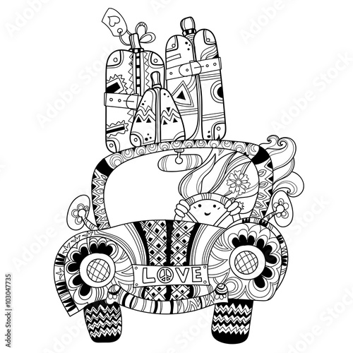 Vintage Car Outline Couture Princess Embroidery
