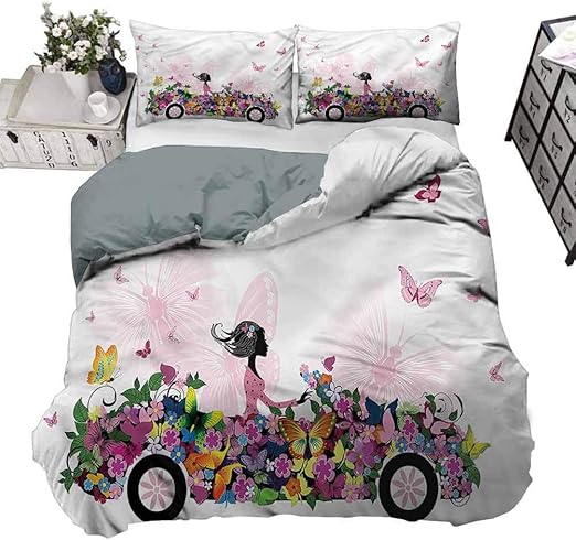 Amazon Com Duvet Cover Cars Floral Car Butterflies Premium Quilt Cover For Home Hotel Collection King 104 X 90 Inch Home Kitchen