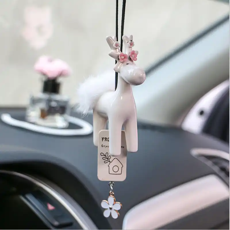 1 Pc Ceramics Car Interior Deer Ornaments Hanging Ornaments Flower Tassels High Class Diy Safeguards Cute Car Accessories Aliexpress